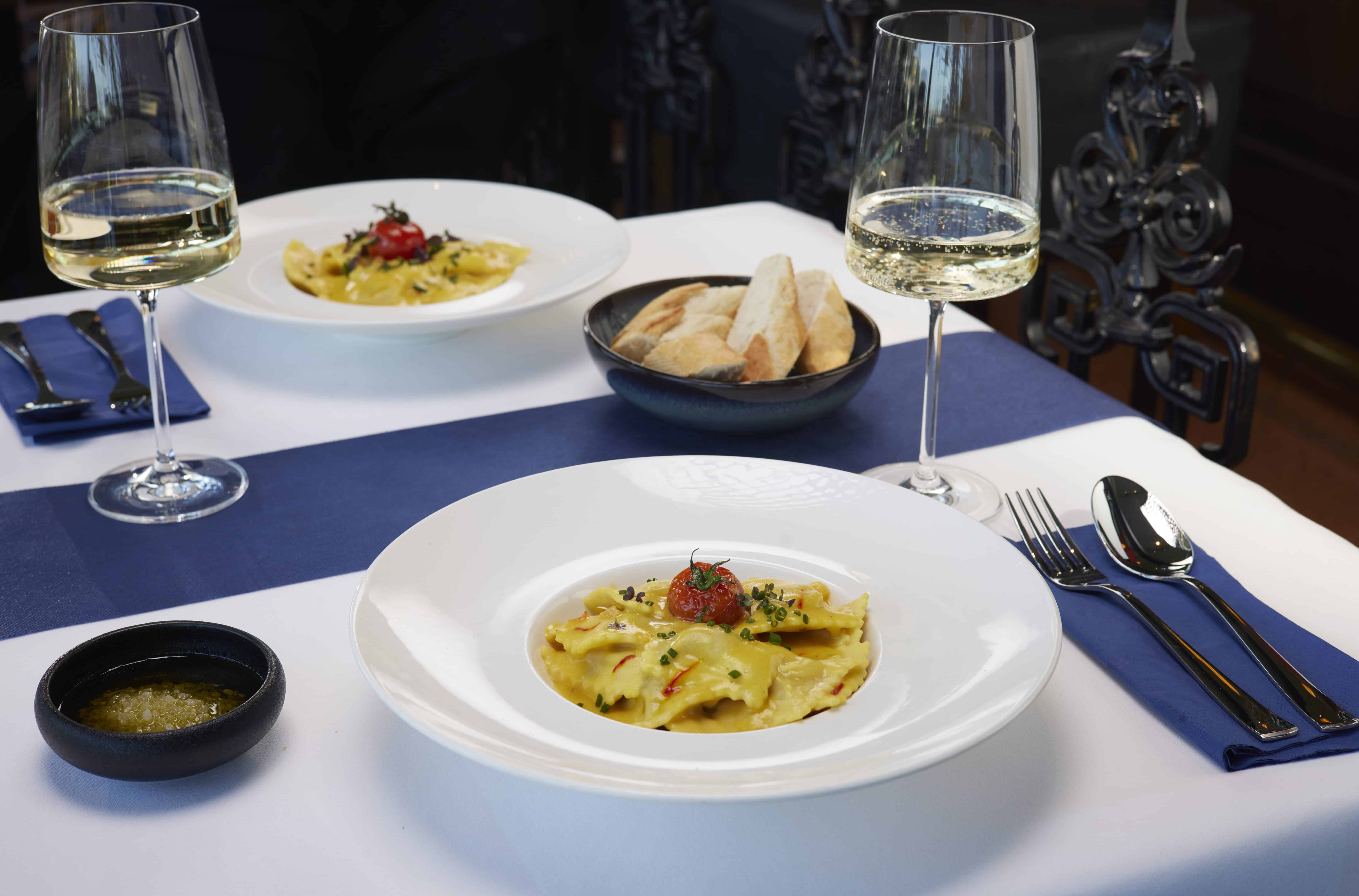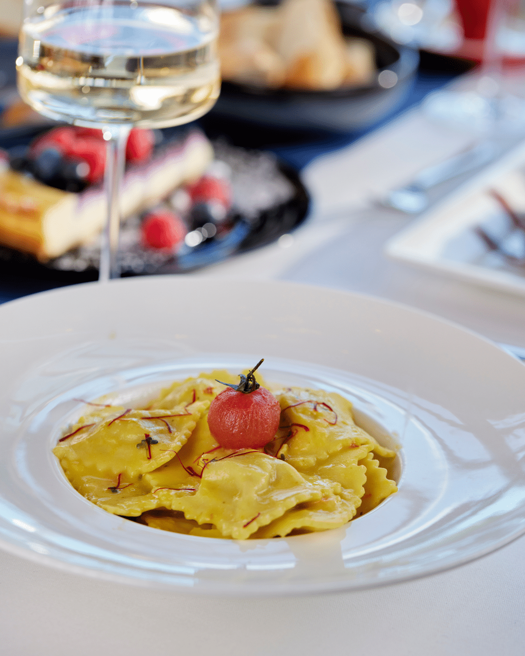 Ravioloni, gefüllt mit norwegischem Wildlachs, an Safran Sauce